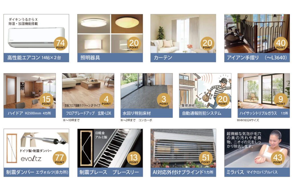 このキャンペーンは、単なる一律の値引きではありません。1ポイント=1万円という明確な基準のもと、お客様一人ひとりのライフスタイルに合わせて、最新設備や高性能オプションを自由に組み合わせることができる、これまでにない画期的な試みです。