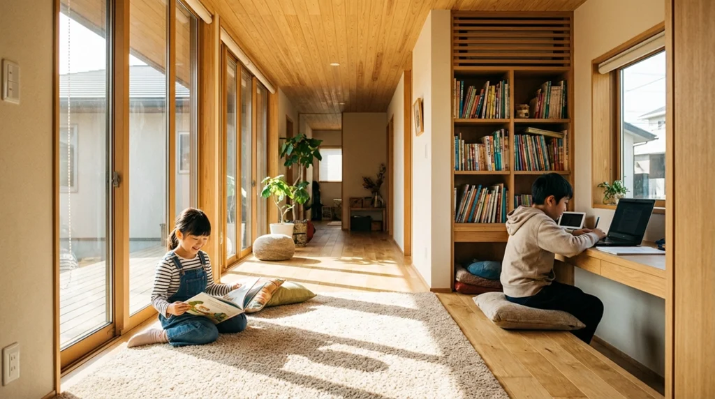 家の面積を効率化しようとすると、真っ先に削られるのが「廊下」です。しかし、プロはあえて廊下に別の役割を持たせ、「居心地の良いスペース」へと昇華させます。