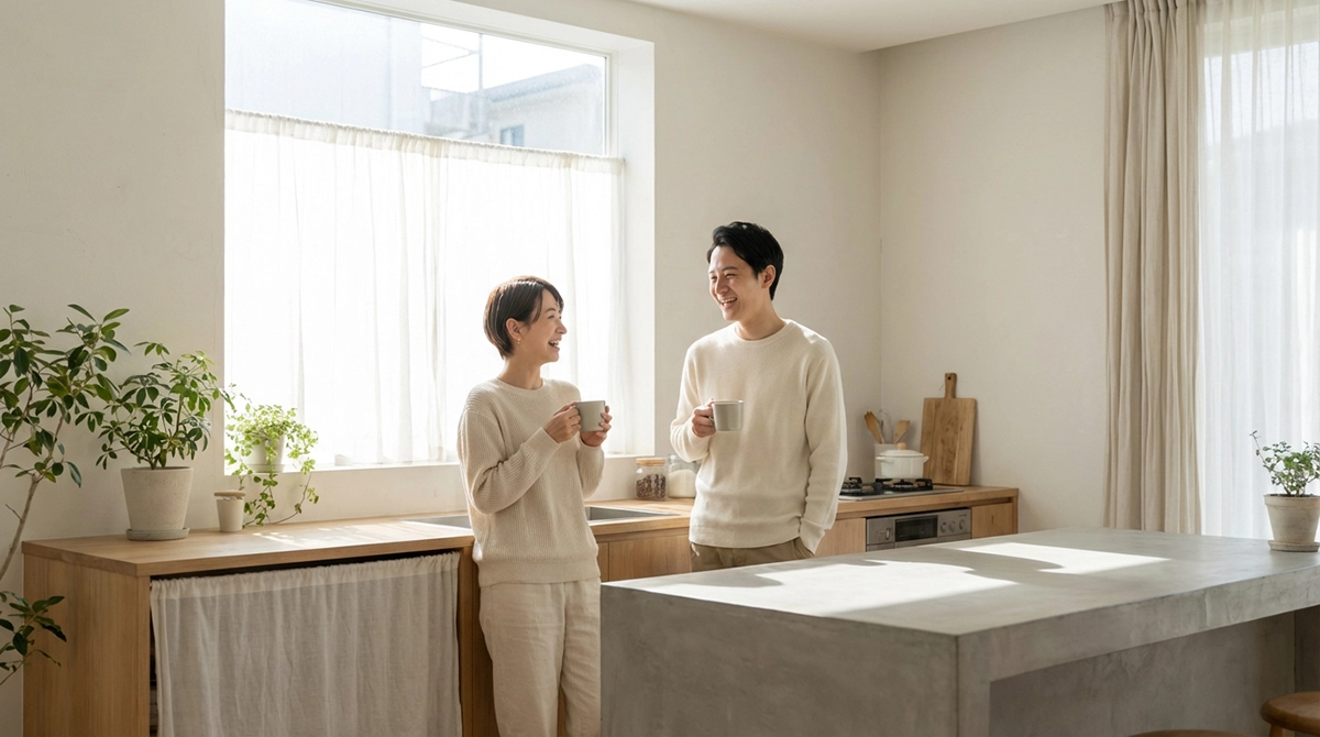 お気に入りのアイランドキッチンで、パートナーと一緒に週末のブランチを作るひととき。吹き抜けから差し込む柔らかな朝日の中で、ゆっくりと流れる時間。あるいは、将来増えるかもしれない家族の笑い声。そこには、単なる「箱としての家」ではなく、パートナーと共に歩む「理想のライフスタイル」があるはずです。