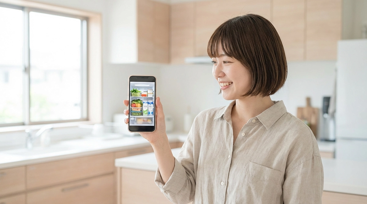 冷蔵庫カメラの最大のメリットは、「外出先からスマホで冷蔵庫の中身をリアルタイムに確認できる」という、極めてシンプルかつ強力な体験にあります。