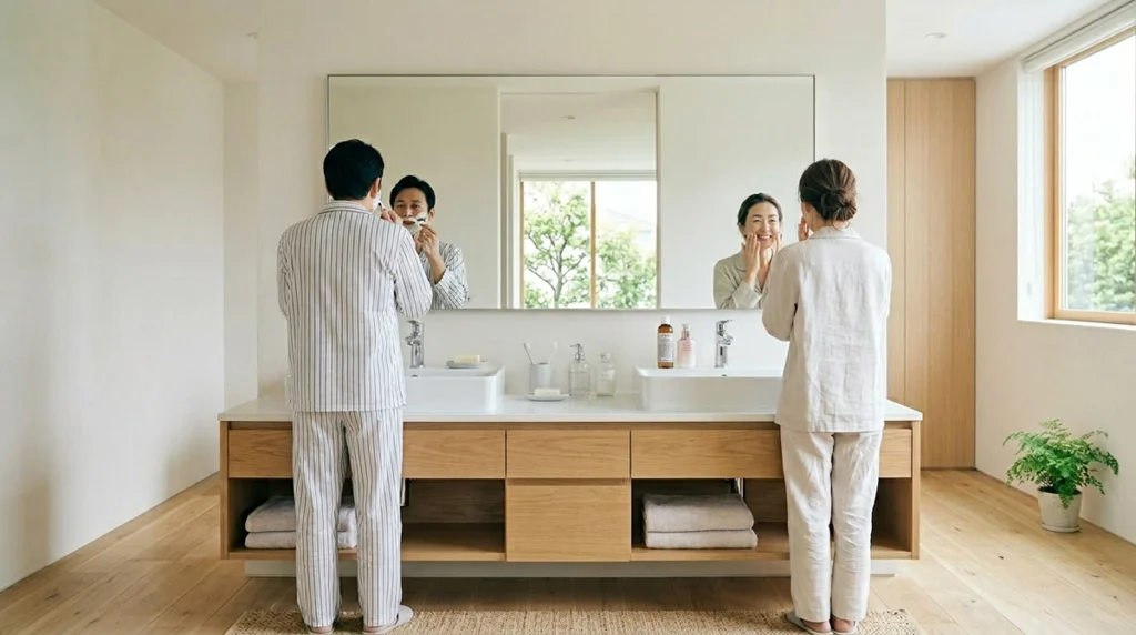 2ボウル洗面台は、単に「手や顔を洗う場所が2つに増える」という物理的な変化にとどまりません。