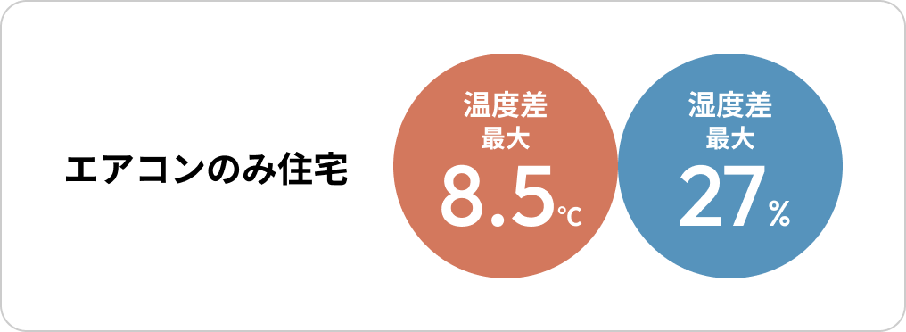 エアコンのみの住宅と比較した全館の温度・湿度差
