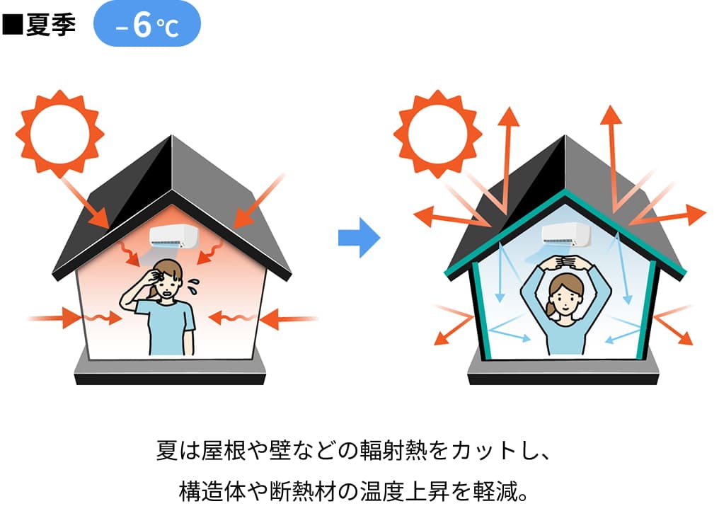 断熱材だけでは、それ自体が輻射熱を保温・蓄熱してしまうため、夏場の外気温を溜め込み、家の中が暑くなってしまいます。
