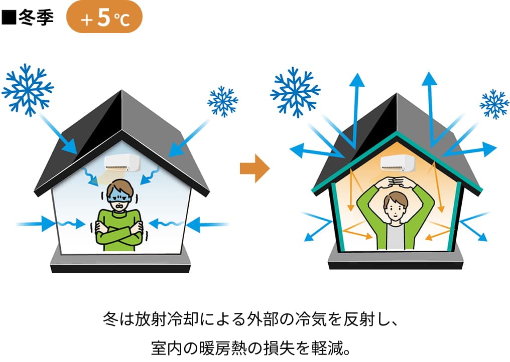 夏は外気温の暑さを跳ね返し、冬は室内の暖かさを外へ逃さない仕組みで、省エネルギーかつ最高クラスの快適さを実現しています。