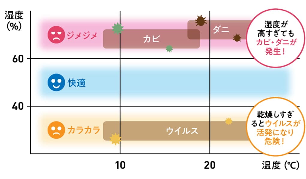 人の暮らしに最適な湿度は、40~60%といわれています。