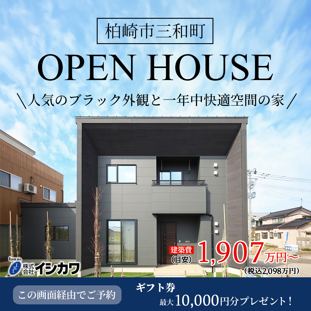 イシカワの住宅やモデルハウスを初めてご覧になられる方は事前予約で最大1万円の商品券プレゼント!
