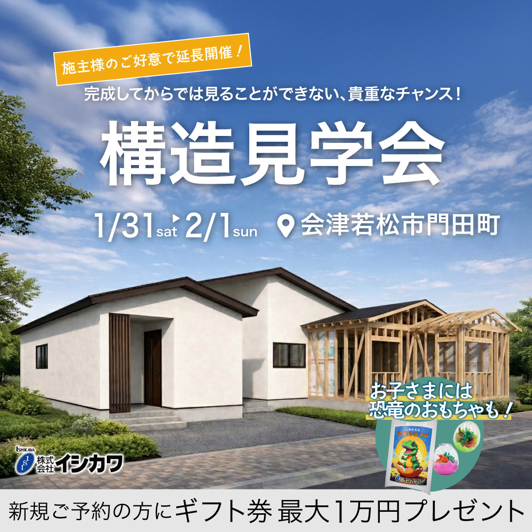 【会津若松市・門田町】今しか見れない!強固な家づくり・構造見学会
