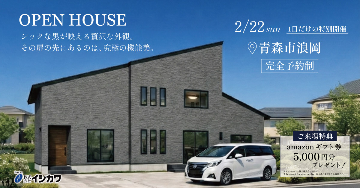 【青森市・浪岡】シックな黒が映える贅沢な外観。その扉の先にあるのは、究極の機能美。