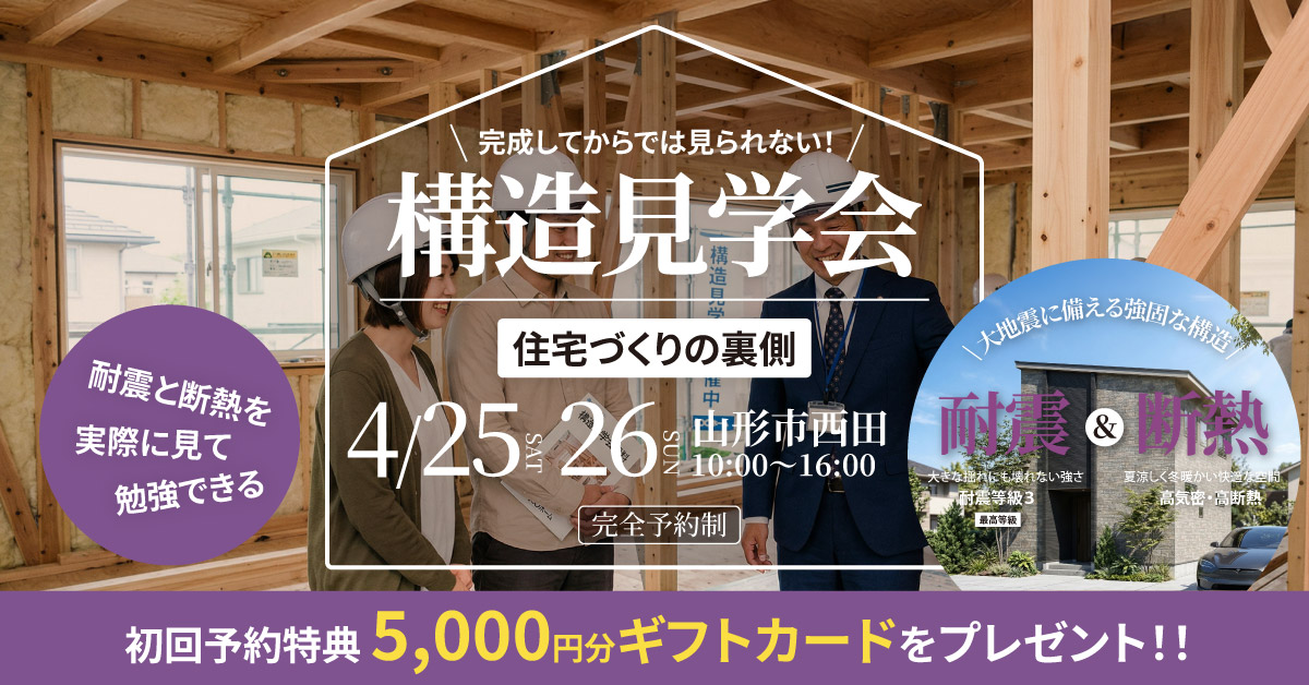 【山形市西田】完成してからでは見られない!住まいの『真価』をお確かめください。【構造見学会】