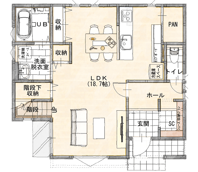 シンプルな暮らしやすさをかなえたアイモリーのプラン。どんな生活にもフィットするように、暮らしに必要なものをそろえています。