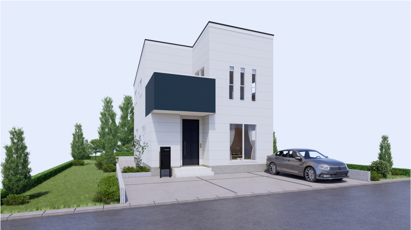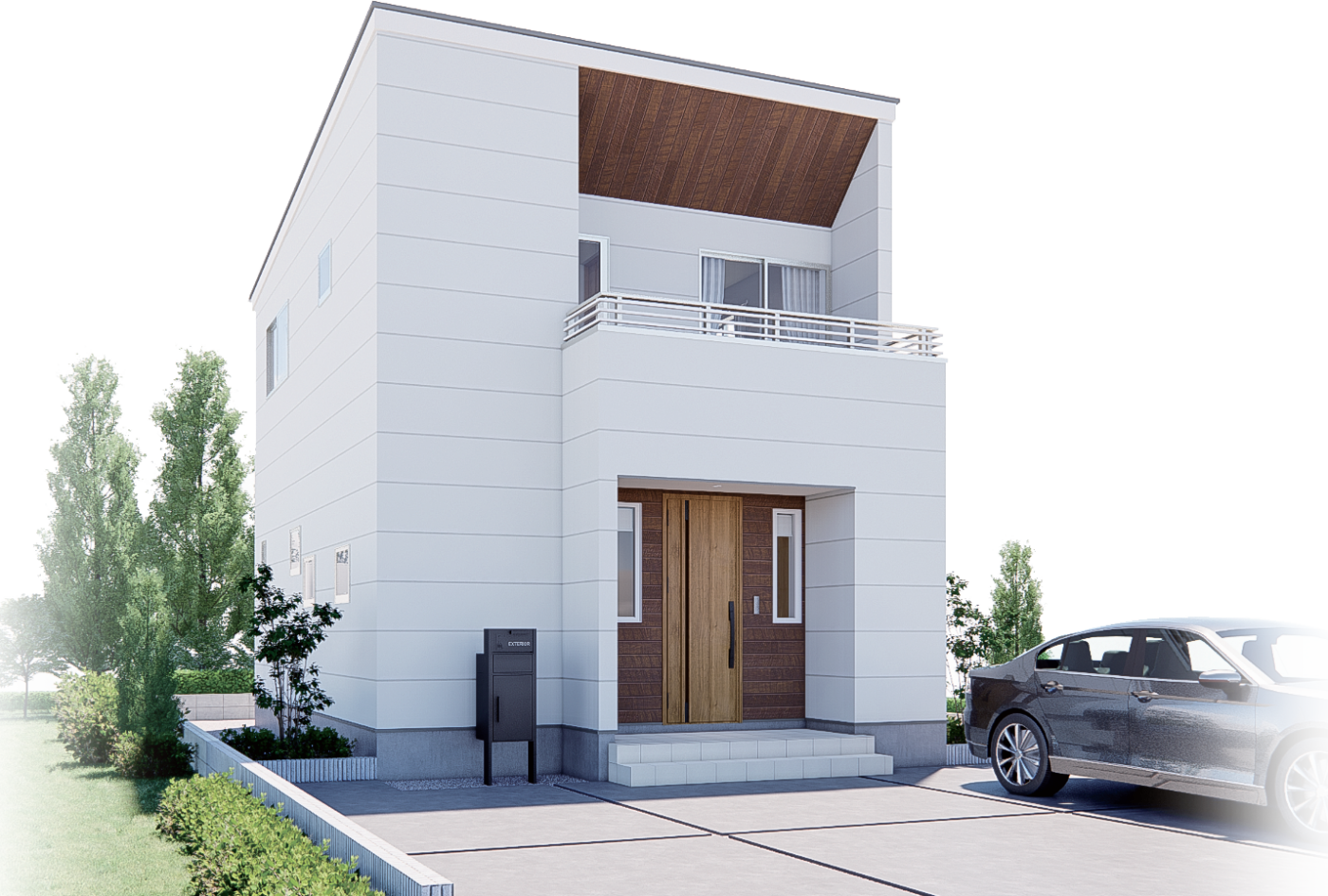 スクエアなフォルムでスタイリッシュな印象に自由設計のデザイン住宅