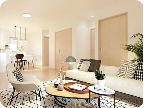 一歩足を踏み入れれば、くつろぎが広がるレイアウトが家族の絆を深め、ゆったりとした時間を提供します。
