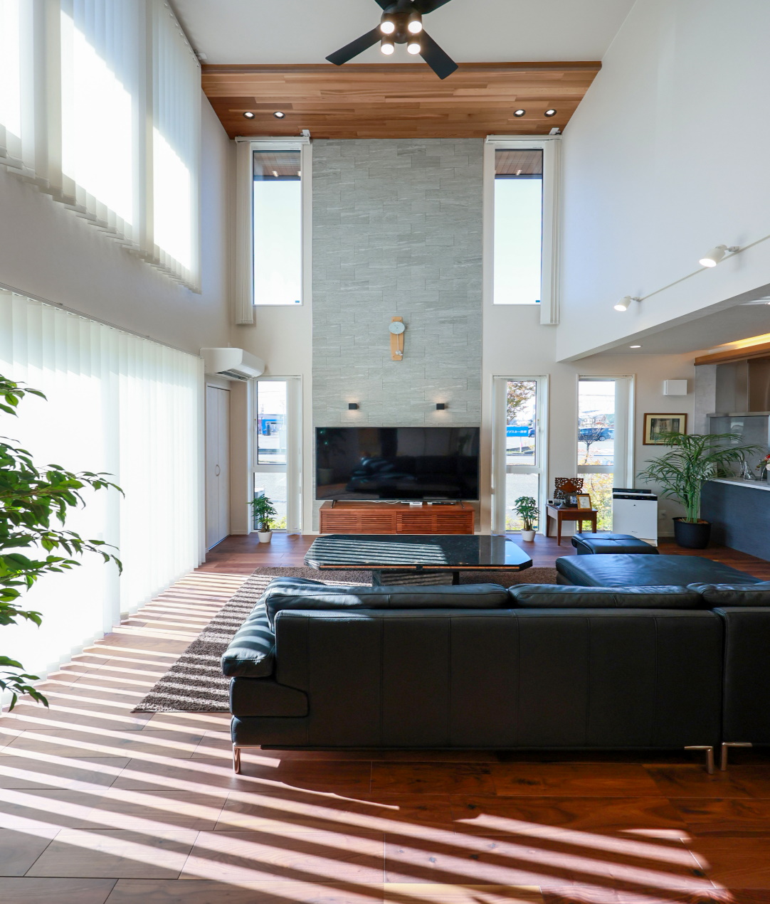 最高レベルの耐震性に加え、冬は全室窓際でも暖かい超高気密高断熱施工を体感できるモデルハウスです。