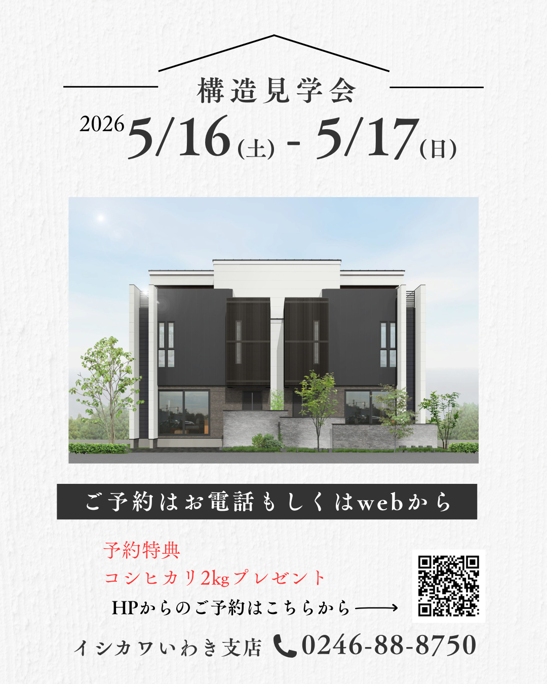 【いわき】イシカワいわき展示場(ハウジングプラザいわき南内)5/16(土)、5/17(日)新モデルハウス構造見学会のお知らせ