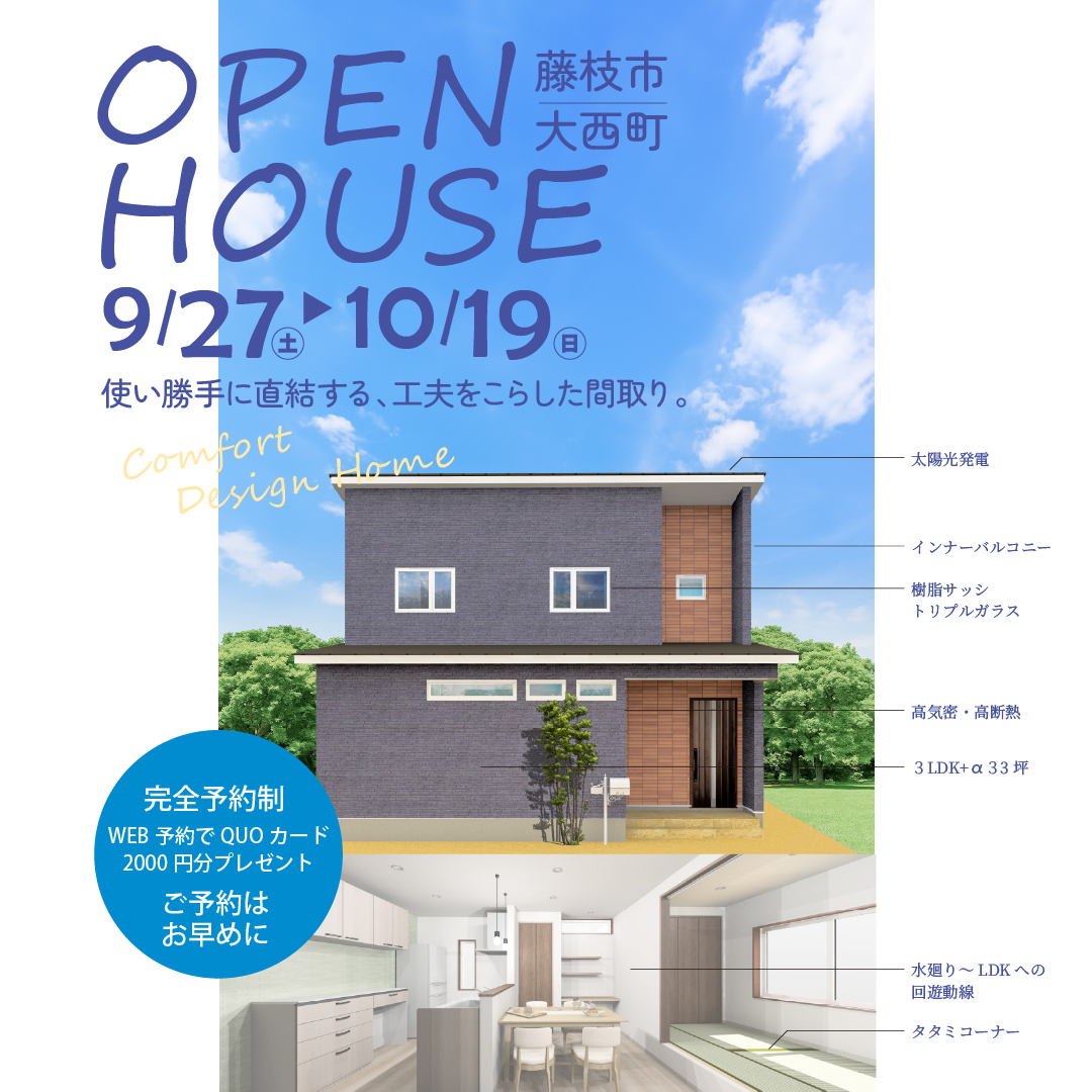 【藤枝市大西町】完成見学会ご予約受付中 10/19までの開催です