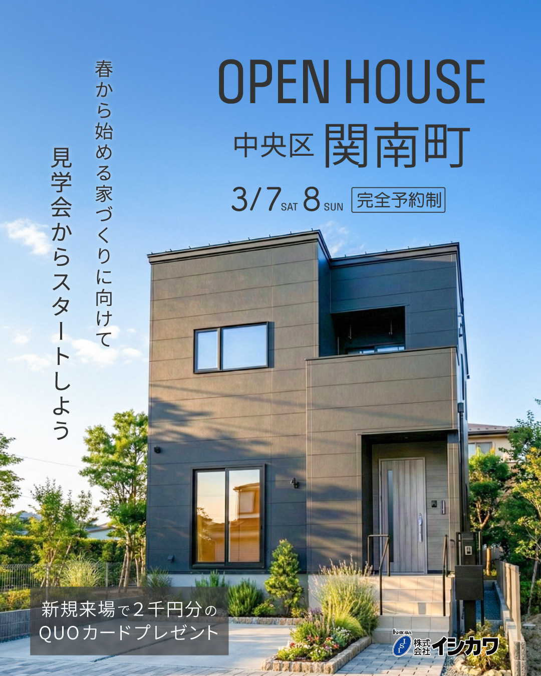 【中央区関南町】にて、3/7~3/8に開催する完成見学会のご予約を受付中です!