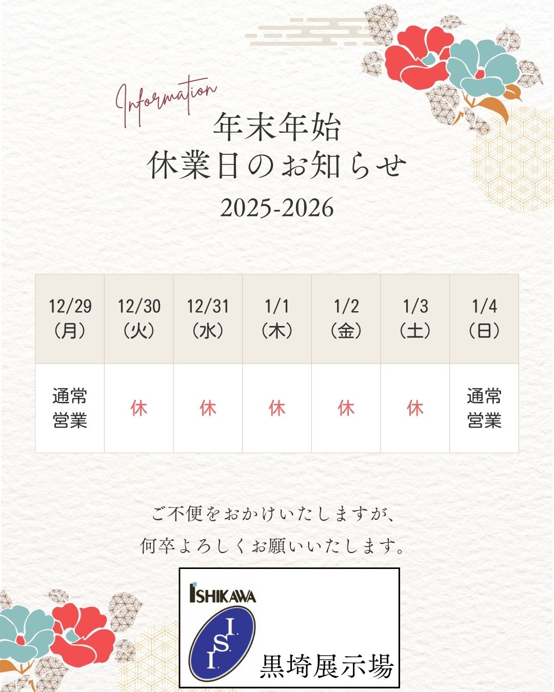 誠に恐れ入りますが、12月30日~1月3日を休業とさせていただきます。