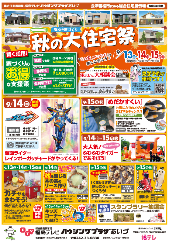 9/13(土)・14(日)・15(月・祝)の3日間、ハウジングプラザあいづにて