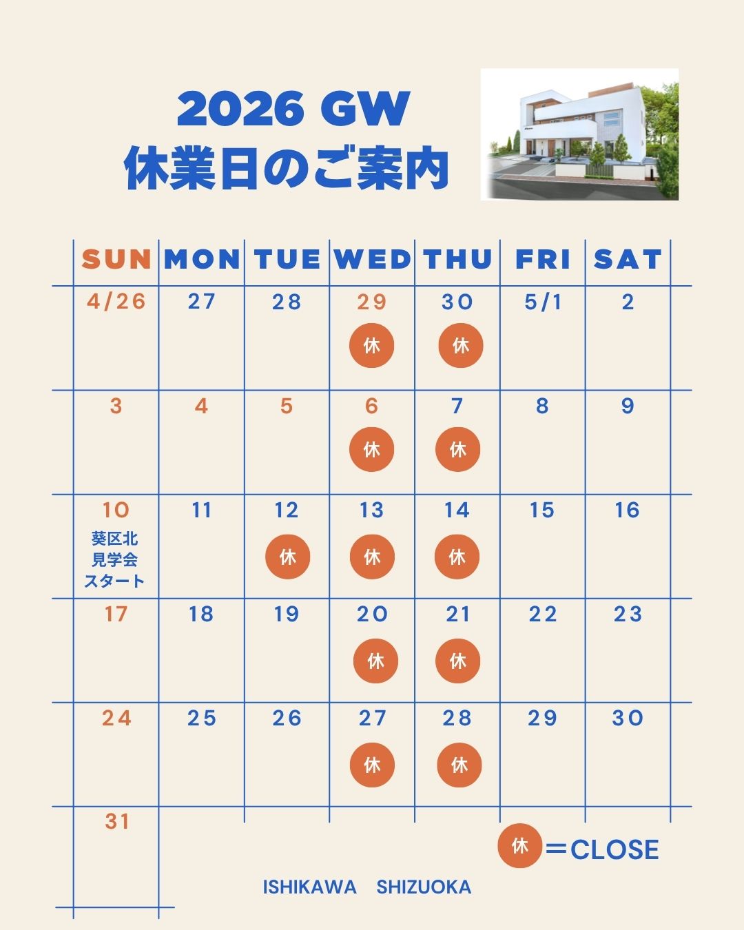 2026ゴールデンウィーク 休業日のお知らせ