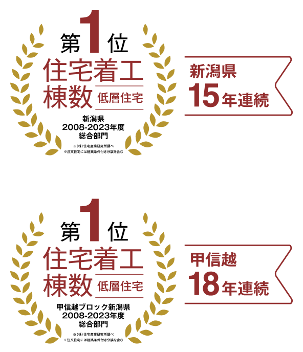 甲信越では18年連続で住宅着工棟数1位を誇る実績を重ねています。