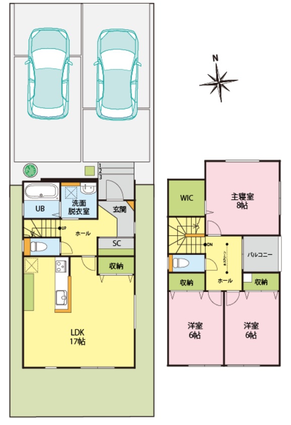 3LDK+駐車スペース2台分 人気の間取を取り入れた住宅♪