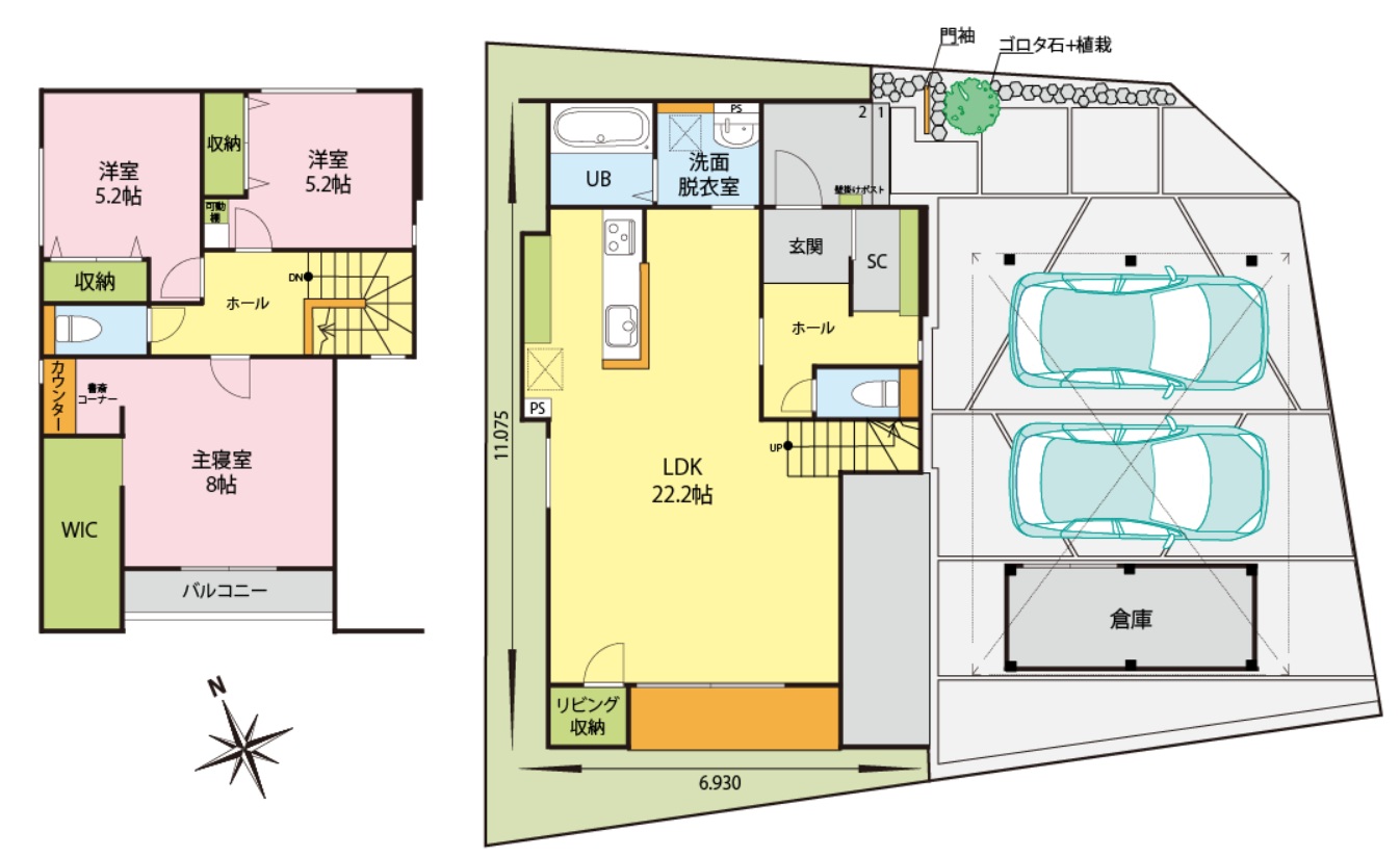 - 北西側道路幅員:6m