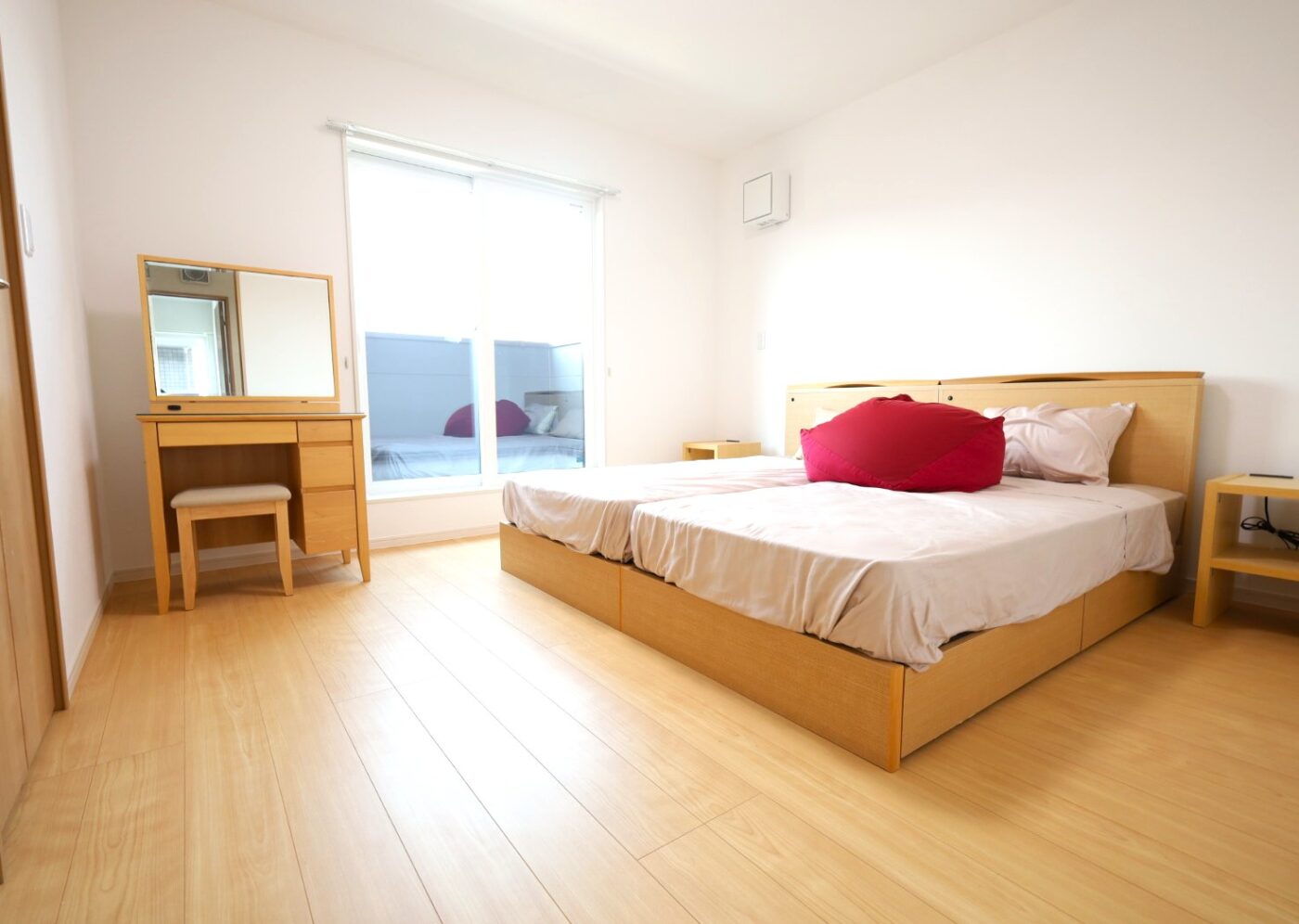 2階主寝室の広いウォークインクローゼットは収納力抜群。片付けもラクラクです。