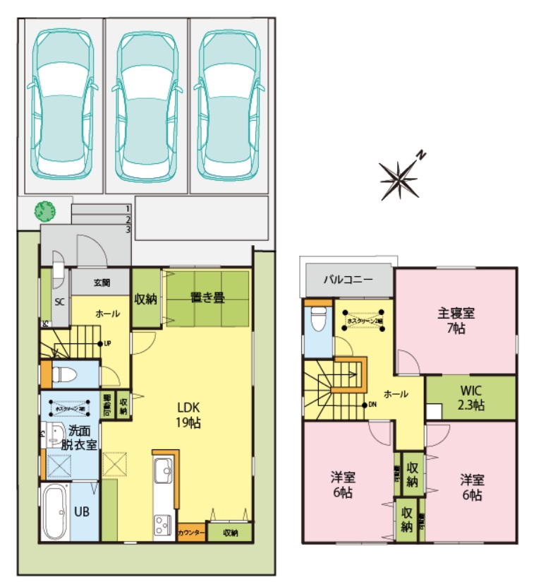 3LDK+駐車スペース3台分 人気の間取を取り入れた住宅♪