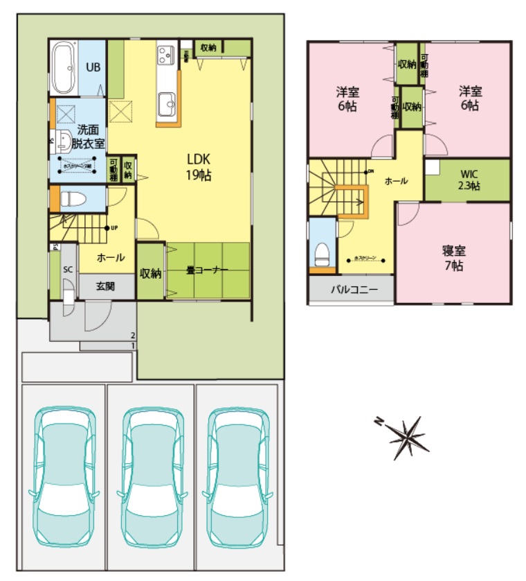 3LDK+駐車スペース3台分 人気の間取を取り入れた住宅♪