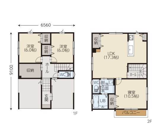 狭小地に最適なプランで愛車を守るインナーガレージ2台分を確保。 広々ファミリークローゼットを設けることで各居室のスペースを圧迫させません。