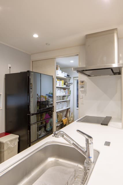 対面キッチンは、和室で遊ぶお子様を見守るのにもうってつけ。