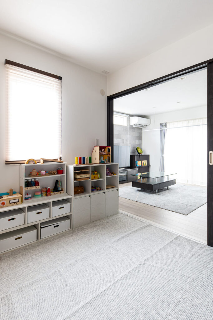 和室は今はお子様たちのおもちゃスペースになっているが、将来的には寝室として利用することも考えられている。