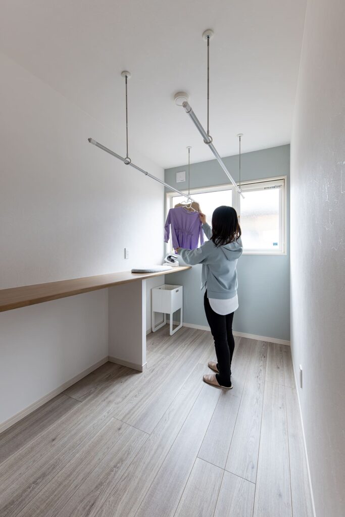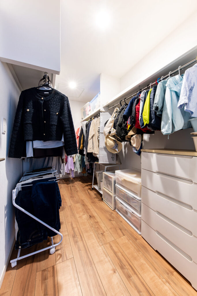 奥にはお子様が自分で服を選べる高さにハンガーパイプを設けるなど、細かな工夫が見られる。
