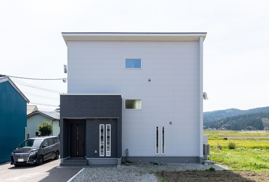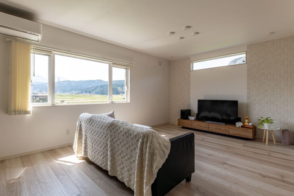 田園と雪山を眺める 開放的な2階リビング