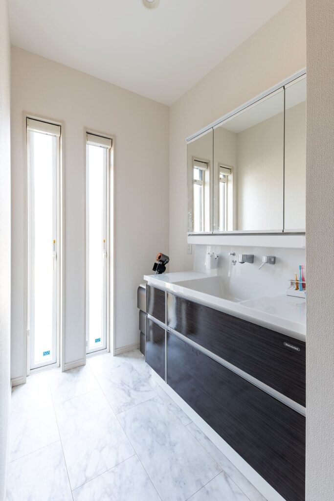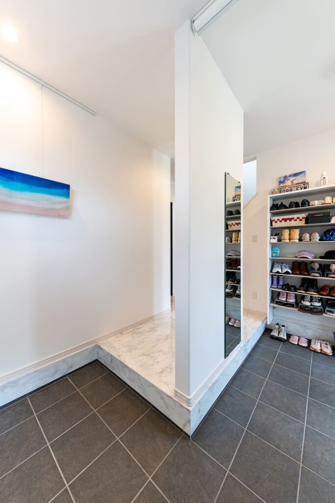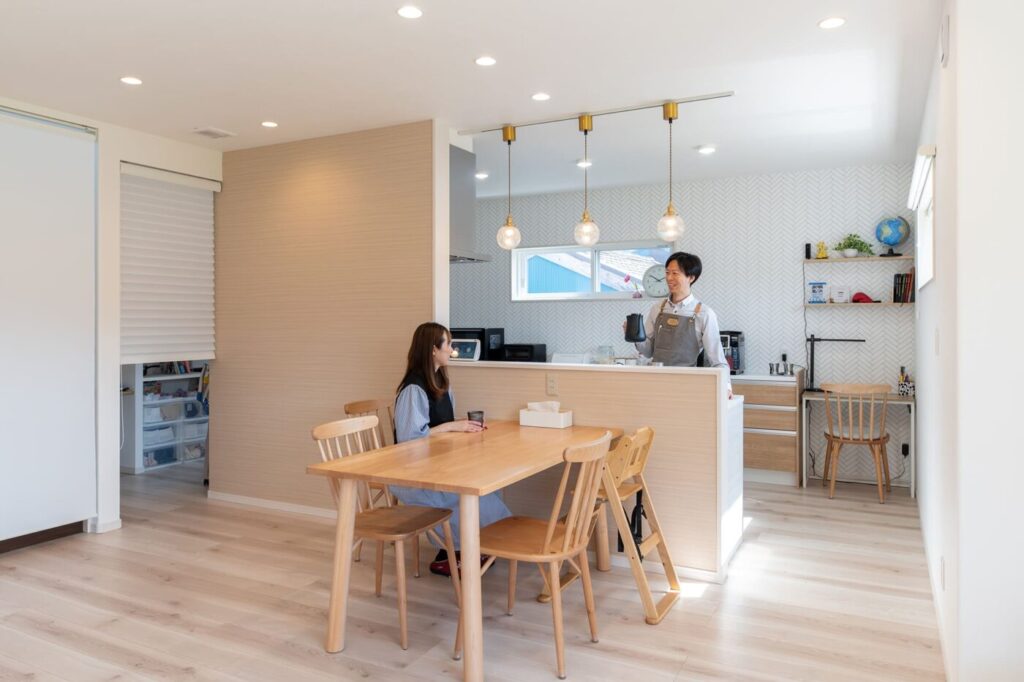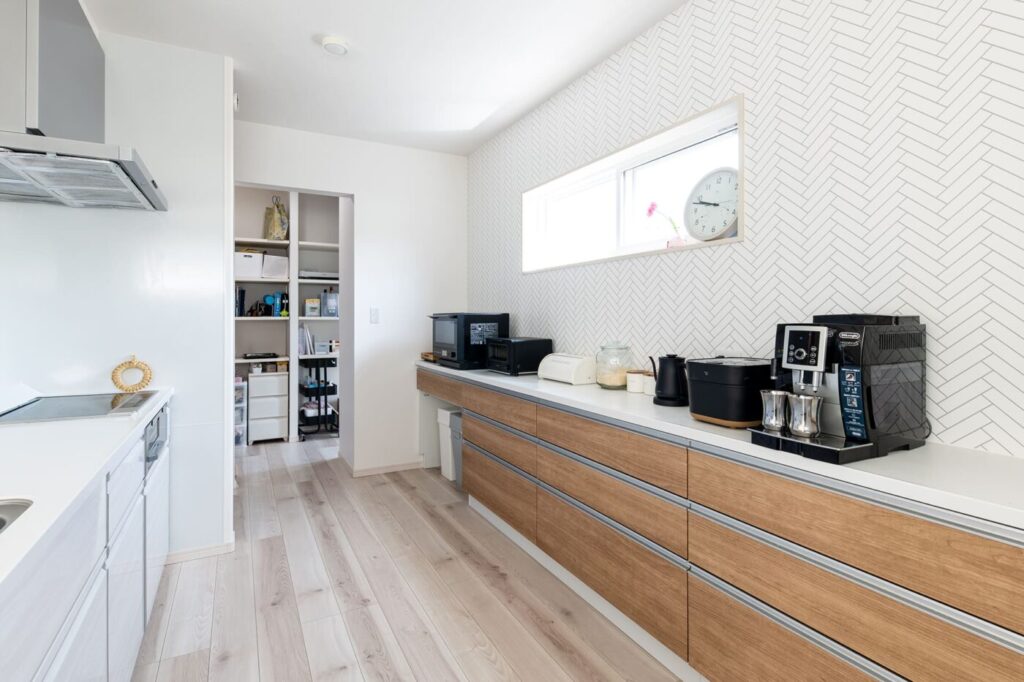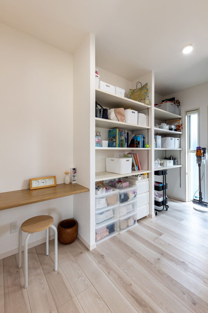 左に見える造作デスクはお子様の勉強スペースとして活用。