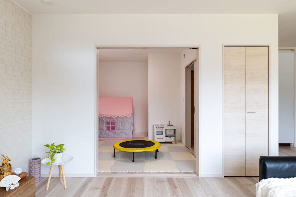 2枚の引き戸を開ければ、リビングと一体に使える。