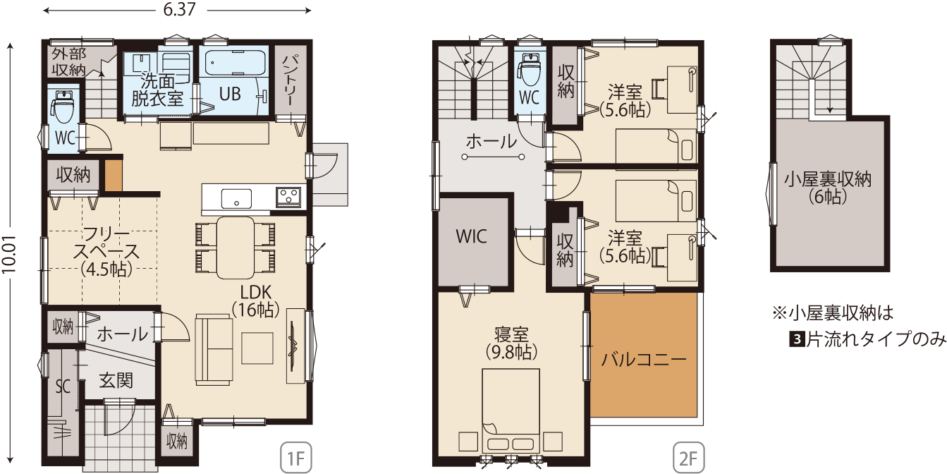 フリースペースで遊ぶお子さんをキッチンから見守れます。2階へ行く途中でリビングを通ることで家族の会話が生まれます。2階の洋室の間仕切をせず、広い1室として利用することもできます。